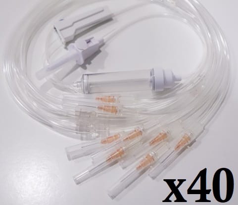 40 x Piovre a 8 VIE con AGHI Arancioni 25G LUNGHI 16MM per MESOPERFUSIONE