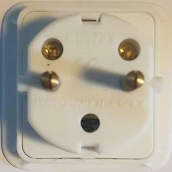 Adattatore per utilizzare in Francia e in Europa dispositivi provenienti dalla Gran Bretagna o simili.